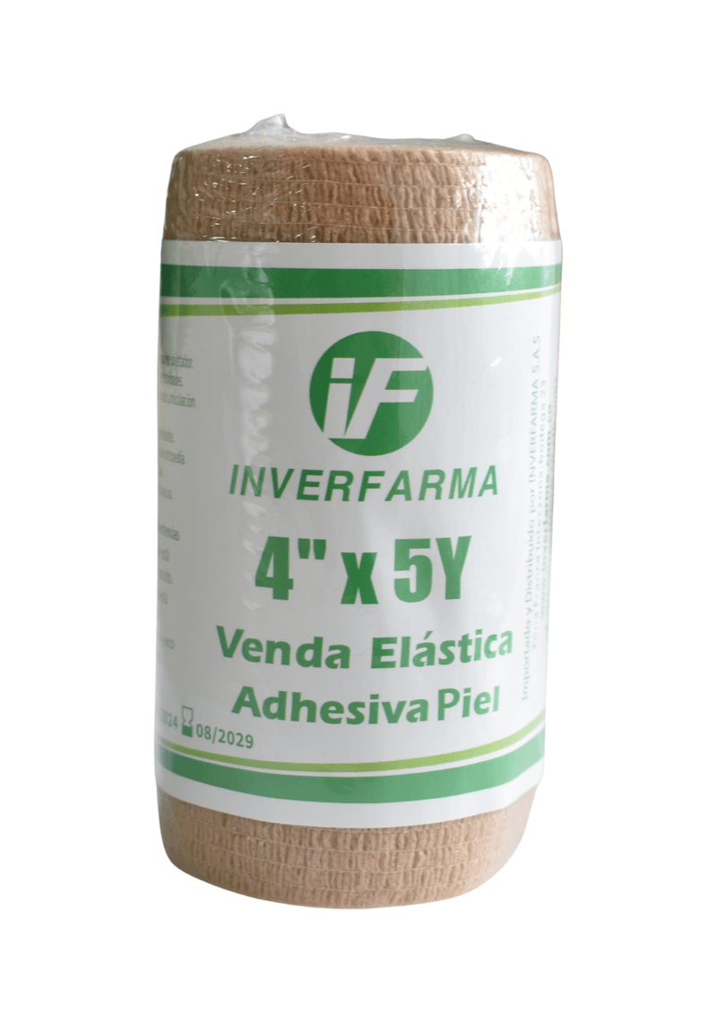 Venda Elástica Adhesiva Cohesiva de 4 pulgadas por 5 yardas es un tipo de vendaje que tiene la particularidad de adherirse a sí misma sin necesidad de clips o cintas adicionales. Su elasticidad permite un ajuste cómodo y seguro, proporcionando soporte y compresión en diversas aplicaciones médicas o deportivas.