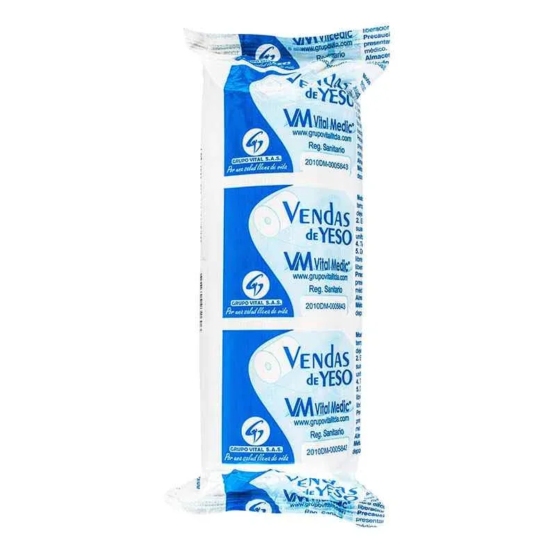 Venda de yeso, tamaño 6x5 yardas, adecuada para inmovilización de extremidades.