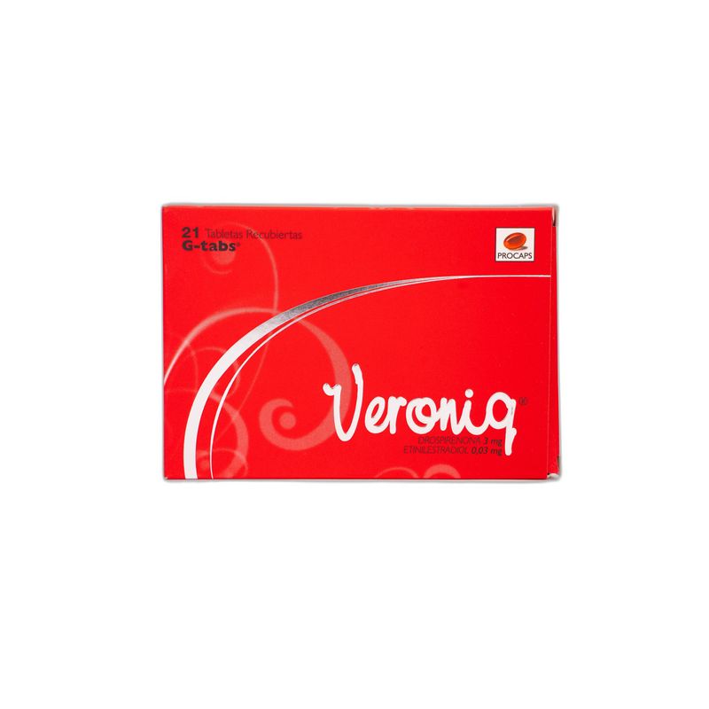 Veroniq Drospirenona 3Mg Etinilestradiol 0.03Mg Caja X 21 Tabletas Procaps. Este producto es un medicamento, no exceder su consumo. Leer indicaciones y contraindicaciones, si los síntomas persisten consultar al médico. Venta bajo fórmula médica.