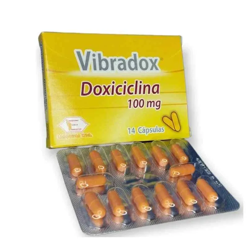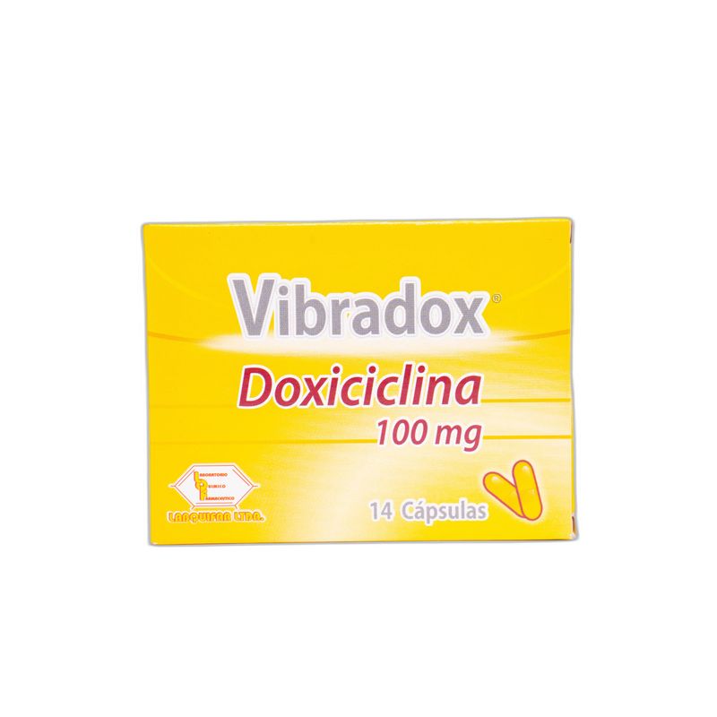 Vibradox Doxiciclina 100Mg Caja X 14 Cápsulas Labquifar. Este producto es un medicamento, no exceder su consumo. Leer indicaciones y contraindicaciones, si los síntomas persisten consultar al médico. Venta bajo fórmula médica.