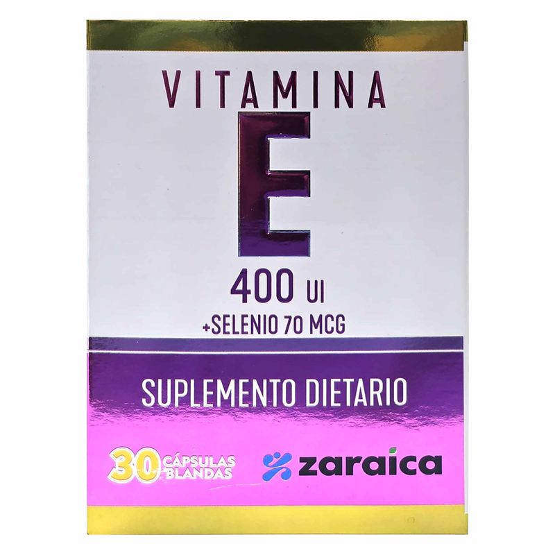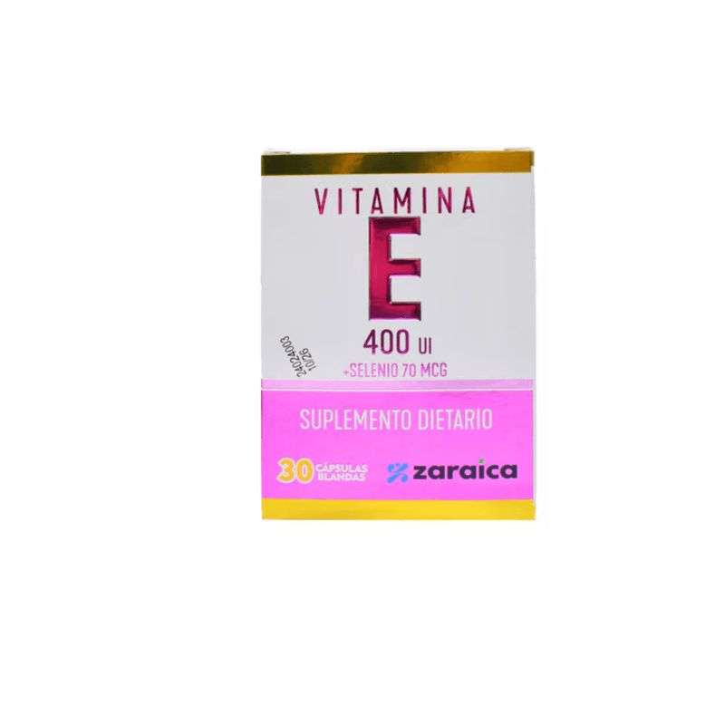 Vitamina E 400 Ul Selenio 70 Mcg Caja X 30 Caps Este suplemento combina Vitamina E (un antioxidante) en una dosis de 400 UI con selenio (un mineral con propiedades antioxidantes) en una dosis de 70 mcg. La caja contiene 30 cápsulas para complementar la dieta y apoyar la salud celular.