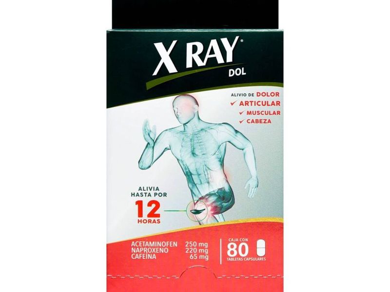 X Ray Dol Caja X 80 Tabletas 2 Und Oferta X Ray Dol es un analgésico. Esta oferta incluye una caja con 80 tabletas y una unidad adicional como parte de la promoción. Se utiliza para el alivio del dolor leve a moderado.